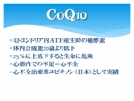 図11体内での生産能力は20歳より低下し25%以上低下すると生命に危険を及ぼすとされています。元来心不全治療薬として使用され、効果は立証されていますが医薬品の使用量は30㎎に制限されていますから、サプリメントとして使用する方が有利です。