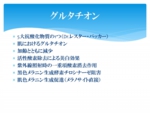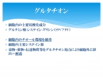 グルタチオンは細胞内の主要抗酸化成分として認知されていますがグルタミンーシステインーグリシンのトリペプチド(アミノ酸が3個くっついた状態)として存在し細胞内のチオール環境を維持する働きのあるシステインの主要供給源としての働きが重要です。(図18・19)システインは単独で投与するよりも活性酸素発生がより少ないグルタチオンで投与した方が良いとされています。ビタミンCとシステイン配合を売り物にした医薬品が販売されていますが、少し問題があるかもしれませんね。