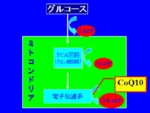運動する時のエネルギー源は糖質や脂肪であることはお話しましたが、ATP産生が鍵を握っていることも思い出して下さい。グルコースは解糖系でATPを2個得た後ミトコンドリア内に入り、あの有名なクエン酸回路(TCA回路)でさらに12個ATPを得ます。此処で得られた水素イオンが電子伝達系(別名水素イオンダム)と呼ばれる場所で実に34個のATPを得ることになります。この反応の初期の段階で補酵素Q10:以下CoQ10が必須になります。もしCoQ10が不足すれば34個のATPを放棄することになりかねないのです。